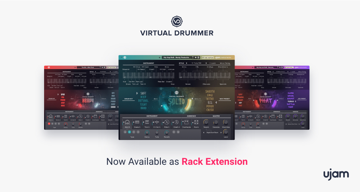 We didn’t change everything, though. One thing we made sure to keep was the fail-proof simplicity and sonic versatility from the original A-List Drummers. We loved that bit and so did customers, so that’s here to stay. Magical things happen when you combine the living, breathing performance of a top-notch session drummer with a professional engineer in a world-class recording studio. We’ve captured all of that magic and let you play, combine, and tweak a virtually endless array of drum patterns in real-time to create unique, realistic, and inspiring performances. Sebastian Bretschneider, Product Manager of the Virtual Drummer series comments: “With this release, we’re making sure that musicians can benefit from UJAM’s trademark ease-of-use in any DAW they call home. With our plug-ins and Rack Extensions, beginners and professionals can quickly lay down amazing sounding beats with no previous drumming experience. Virtual Drummer Rack Extensions work perfectly with our other product lines Virtual Bassists and Beatmakers and really put you in the producer’s chair.“ Learn more about the A-List Drummer to Virtual Drummer Rack Extension evolution in this short video: