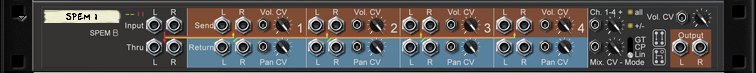 SPEM helps you to control input/output volume however SPEM can also help your creativity, with a simple switch you can change the routing connections from Serial to Parallel or Parallel to Serial. There is a channel selector that can be CV controlled, you can choose one channel at a time, be adventurous and put an LFO on it and continuously switch between the channels.
