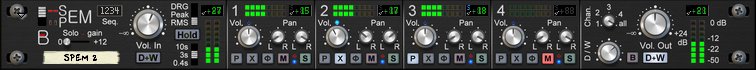 SPEM takes incoming main audio signal, splits it into four audio signals assigned to the four channels outputs.